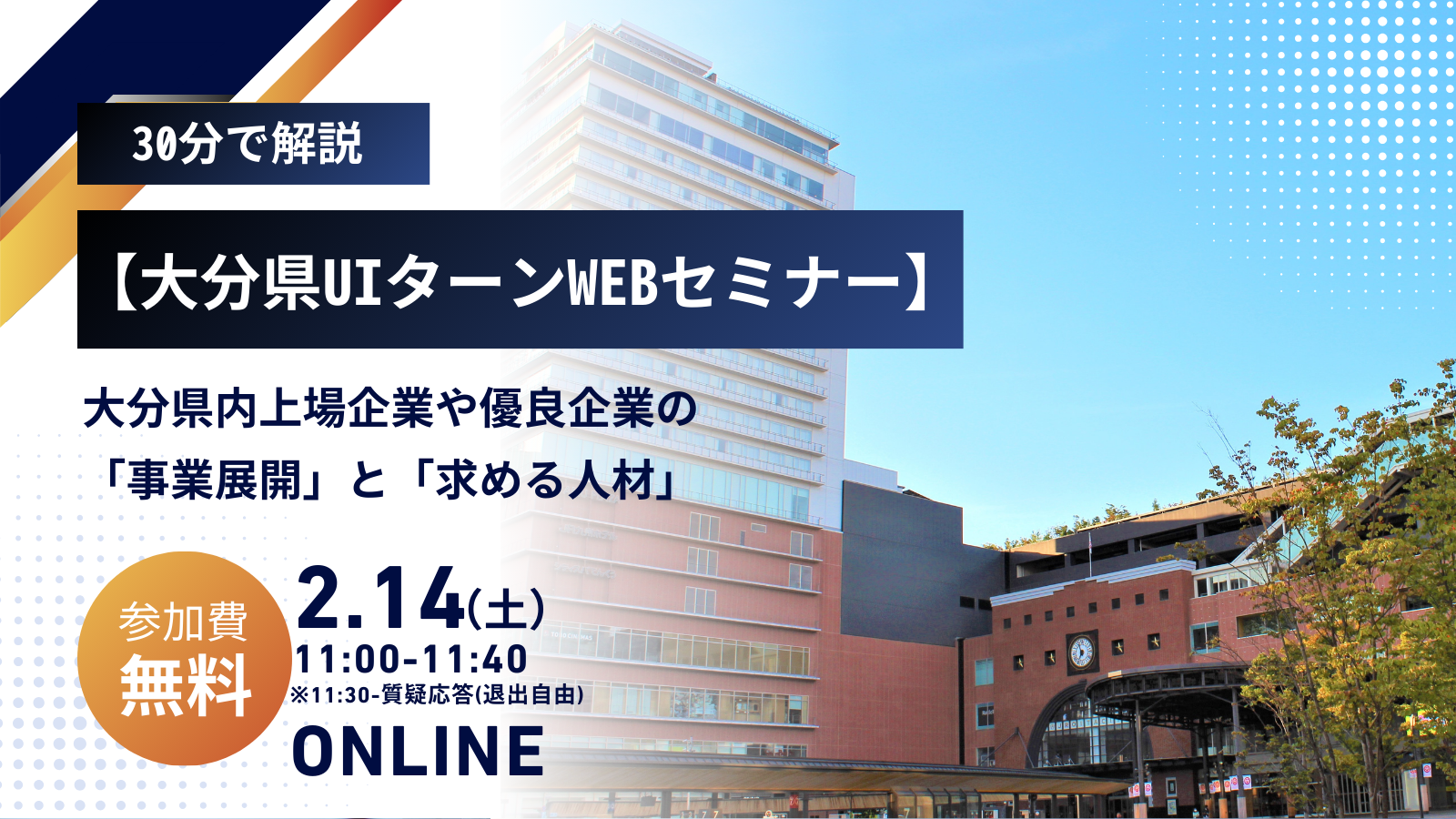 【大分県へのU・Iターン転職オンラインセミナー】大分県内上場企業や優良企業の「事業展開」と「求める人材」を30分で解説